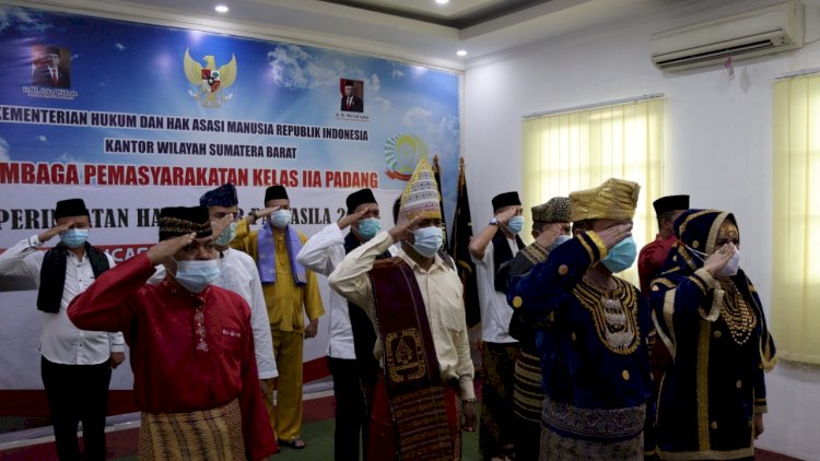 SUMBAR|PADANG - Lembaga Pemasyarakatan (Lapas) Kelas IIA Padang ikuti Upacara Peringatan Hari Lahir Pancasila yang dipimpin langsung oleh Presiden Joko Widodo secara virtual di ruang rapat pada Selasa (1/6).