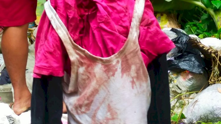 Selain pakaian dan tali, barang bukti lain yang diamankan di lokasi antara lain karung putih robek, bantal merah kombinasi putih, dan kaos singlet warna putih dengan bekas darah mengering.