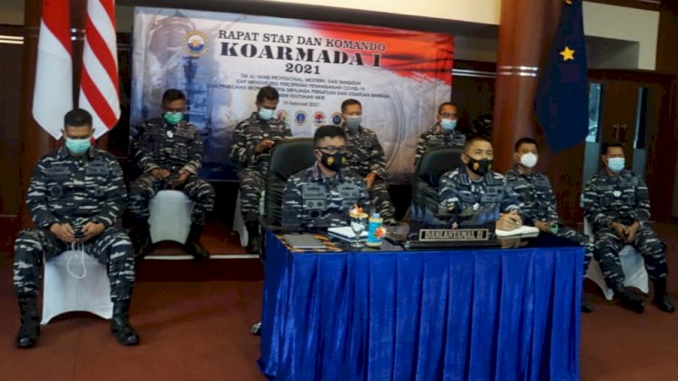 Dalam pengarahannya, Pangkoarmada I Laksamana Muda TNI Abdul Rasyid K, SE, MM mengatakan, “dampak pandemi Covid-19 diprediksi menjadi pemicu bangkitnya kembali kejahatan di wilayah kerja Koarmada I, sehinga perlu adanya penguatan kembali unsur KRI, Pesud, Satrol, Yonmarhanlan dan intelijen untuk bersinergi guna mencegah dan menangkap pelaku tindak kejahatan di laut”.