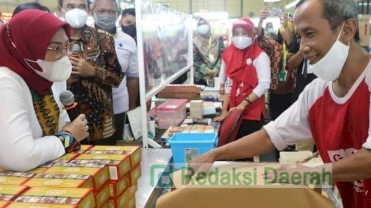 Mojokerto |Jateng| - Menteri Ketenagakerjaan Republik Indonesia Ida Fauziyah mensosialisasikan senam pekerja sehat kepada pekerja perempuan pabrik rokok di PT Ittihad Rahmat Utama, Mojokerto, Jawa Tengah, Sabtu (07/11/20).