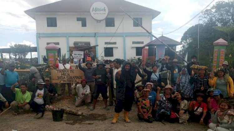 Hal itu diungkapkan tokoh masyarakat Desa Sukamaju Kecamatan Tigapanah Karo Simon Ginting didampingi Kuasa Hukum masyarakat Imanuel Elihu Tarigan SH kepada wartawan, Minggu (17/10/2021) di Kabanjahe. "Masyarakat Desa Sukamaju telah bergerak bersama-sama untuk mempertahankan tanah adatnya dari penguasaan lahan yang dilakukan oleh PT BUK yang mengklaim tanah hak milik Desa Sukamaju berada di lahan HGU (Hak Guna Usaha)-nya," ujar Simon Ginting. Adapun lokasi pemagaran yang dilakukan warga, tambah Simon, berada di areal tiang gapura dan bangunan "Cafe Meriah" di Puncak 2000, karena lokasi itu berada di kawasan tanah adat masyarakat Desa Sukamaju, sehingga warga menguasainya kembali sebagai bentuk perlawanan terhadap PT BUK. Sementara itu, Imanuel Elihu Tarigan yang ikut menyaksikan aksi pemagaran tersebut menjelaskan, diambil-alihnya tanah adat oleh ratusan masyarakat Desa Sukamaju, dikarenakan tanah tersebut bukan milik PT BUK. PT BUK juga tidak mengindahkan surat edaran Bupati Karo yang dikeluarkan pada 30 Juli 2021. Dalam surat edaran Bupati Karo Nomor : 503/1526/DPMPTSP/2021 tersebut, tambah Imanuel, sangat jelas bunyinya, yakni "memberhentikan sementara segala bentuk kegiatan dan aktivitas PT BUK di Puncak 2000 Siosar, menunggu adanya keputusan yang berkekuatan hukum tetap dari pengadilan. "Tapi faktanya sampai saat ini oknum-oknum dari PT BUK masih melakukan kegiatan, bahkan diduga menyerobot lahan dengan melakukan pembangunan tiang gapura di lahan milik tanah adat Desa Sukamaju, sehingga masyarakat keberatan dan bergerak bersama melakukan pemagaran," tandas Imanuel Elihu.