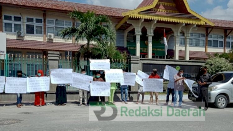 Pekanbaru, RedaksiDaerah.com - Puluhan anak yatim dari Yayasan Keluarga Yatim Indonesia (KYI) dan Kelompok Tani Harapan Jaya, Desa Karya Indah, Kecamatan Tapung, Kabupaten Kampar, Riau menggelar aksi damai di depan Pengadilan Negeri (PN) Kota Pekanbaru, Riau, Selasa (09/02/21).