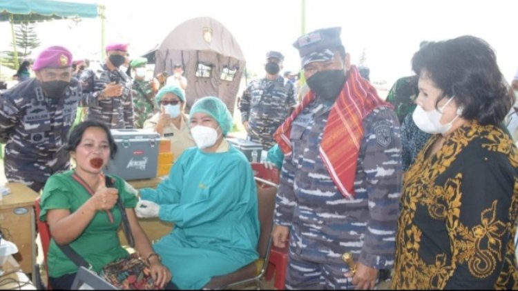 Majelis Ulama Indonesia Tanah Karo dan Pemerintah Kabupaten Karo bekerja sama dengan Tim Vaksinator TNI AL Lantamal I laksanakan Vaksinasi terhadap masyarakat sekitar Kabanjahe, Pelaksanaan Vaksin di Stadion Samura Kabanjahe, Sabtu (23/10/21). Pemberian vaksin kepada masyarakat sekitar Kabanjahe hari ini dilaksanakan dengan jumlah vaksin yang direncanakan sebanyak 1000 orang, vaksin rutin ini selalu dilaksanakan setiap harinya dalam rangka memberikan pelayanan kepada masyarakat yang belum mendapatkan vaksin dosis 1 atau pun 2 yang tidak mengikuti giat serbuan vaksin massal yang dilakukan oleh TNI AL Lantamal I di beberapa tempat, pelaksanaan vaksin di Stadion Samura Kabanjahe dilaksanakan untuk mencapai target program pemerintah vaksinasi Covid-19 dosis ke-1 dan ke-2 sebanyak 70% .Jumlah yang wajib divaksin itu sesuai dengan program jumlah penduduk Indonesia supaya dapat kekebalan komunal (Herd Immunity) dari virus Covid-19. Hadir dalam peninjauan vaksinasi Komandan Lantamal I Laksamana Pertama TNI Achmad Wibisono yang didampingi langsung Bupati Tanah Karo Ibu Cory Sriwaty Sebayang, Ketua MUI Kabanjahe Drs.H.F.Samadin Tarigan S.Ag., Ketua Kemakmuran Mesjid Tanah Karo Bapak Aswin Ginting, S.E., Dandim Tanah Karo, Kapolres Tanah Karo dan Wadanlantamal I beserta PJU Lantamal I yang ikut dalam peninjauan tersebut. Dalam Peninjauan Vaksin. Danlantamal I menyampaikan di depan awaq media bahwa serbuan vaksinasi di Kabupaten Karo ini adalah menjawab permintaan dari MUI dan Pemda Kabupaten Karo akan kebutuhan vaksin kepada masyarakat. Bupati Karo menyampaikan ucapan terimakasih yang sebesar-besarnya TNI AL Lantamal I mau memberikan dukungan Vaksin kepada Masyarakat Karo, semoga kedepannya masih ada dukungan Vaksin untuk masyarakat Karo yang saat ini sudah berada di level I."Ujar Cory S Sebayang. Vaksinasi dilaksanakan oleh 5 Tim yang terdiri dari Diskes Lantamal I sebanyak 2 Tim, RSAL Komang Makes 1 Tim, Puskesmas Kabanjahe 1 tim dan 1 tim gabungan Kodim 0205/Tanah Karo dengan Yonif 125/Simbisa. Pelaksanaan vaksin tetap dilaksanakan sesuai prosedur kesehatan Covid-19 dimana masyarakat setelah selesai divaksin, dihimbau untuk tetap tinggal ditempat untuk menjalani observasi di tribun stadion selama 30 menit guna mengetahui reaksi Kejadian Ikutan Pasca Imunisasi (KIPI) atau efek samping dari vaksin Covid-19 tersebut dengan tujuan apabila terjadi gejala yang tidak diinginkan akan dapat ditangani dengan cepat. Dan tetap menerapkan protokol kesehatan yang ketat dengan harus memakai masker, menjaga jarak dengan tidak bergerombol. Yang diatur oleh provost, Pom al dan Babinpotmar, Babinsa Kodim Tanah Karo Lantamal I serta anggota Polres Tanah Karo.