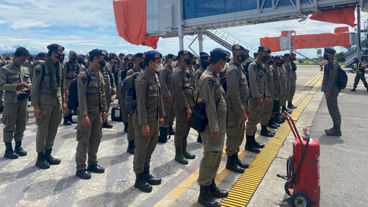 Palangka Raya, RedaksiDaerah.com - Sebanyak satu Kompi pasukan Satuan Brimob Polda Kalteng yang tergabung dalam satuan tugas (satgas) Operasi Damai Cartenz 2022 tiba di Bandara Mozes Kilangin, Timika, Papua, Sabtu (15/01/22) siang.