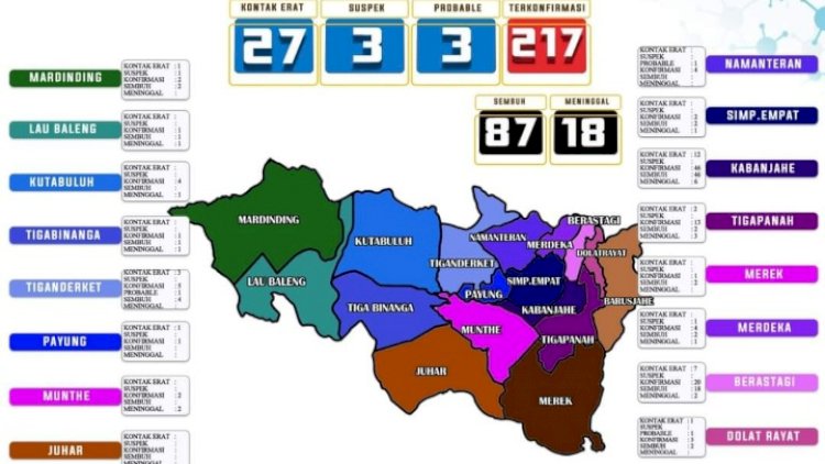 Kabupaten Karo yang sudah dinyatakan zona merah dalam penyebaran covid-19,Hari ini Selasa, 13 Oktober 2020 sekira pukul 17.45 Wib, menambah jumlah Pasien yang terkonfirmasi covid-19 yang artinya penyebaran covid-19 di Kabupaten Karo naik secara signifikan,