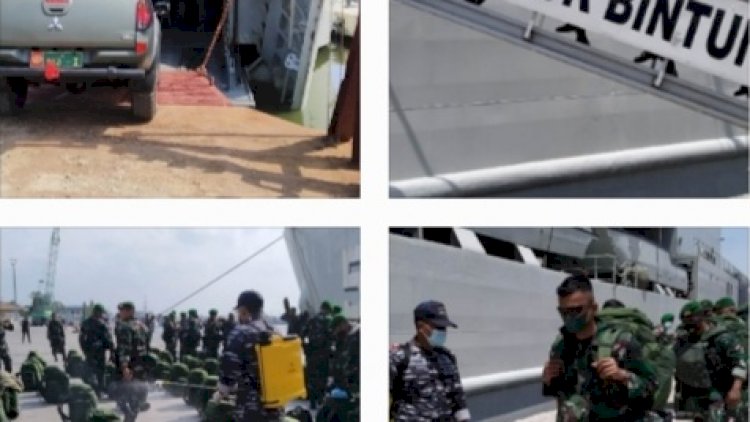Kapal Perang Republik Indonesia KRI Teluk Bintuni-520 dalam rangka misi pengamanan perbatasan NKRI-Papua Nugini tolak meninggalkan Lantamal I Belawan dalam rangka membawa pasukan Batalyon Infantri 123/Rajawali. Tolak dari dermaga Pelindo I Bandar Deli Belawan Sumatera Utara. Kamis (14/10/21). Kapal Perang yang berjenis Landing Ship Tank (LST) yang merupakan karya anak bangsa di galangan Lampung memiliki Panjang 120 meter dengan kemampuan angkut tank 10 unit jenis MBT Leopard 2A4 milik TNI AD yang berbobot mencapai 62,5 ton serta mampu membawa ratusan pasukan, Tolak dari Belawan, KRI Teluk Bintuni - 520 membawa 450 personel pasukan tempur infantri yang berasal dari Batalyon Infantri 123/RW yang merupakan pasukan dibawah kendali Korem 023/Kawal Samudera Kodam Bukit Barisan yang akan melaksanakan operasi pengamanan perbatasan RI-PNG. Rencana pasukan tersebut akan Debarkasi di Meurauke. Tutur Mayor Akbar Kadispen Lantamal. Komandan Pangkalan Utama TNI AL I Laksamana Pertama TNI Achmad Wibisono yang didampingi Komandan KRI Teluk Bintuni-520 Letkol Laut (P) Andrik Irwanto sehari sebelum KRI Tolak menyempatkan diri meninjau langsung Kondisi dan kesiapan Kapal dalam rangka mendukung Satgas Perbatasan RI-PNG, Proses embarkasi Pasukan Yonif 123/RW beserta seluruh peralatan dan peralatan tempur berjalan dengan aman serta dilaksanakan dengan protokoler Kesehatan ketat guna memutus mata rantai penularan Covid-18 selama pelayaran sehingga Kesehatan seluruh personel KRI dan pasukan Satgas menuju daerah tugas dapat terjaga.