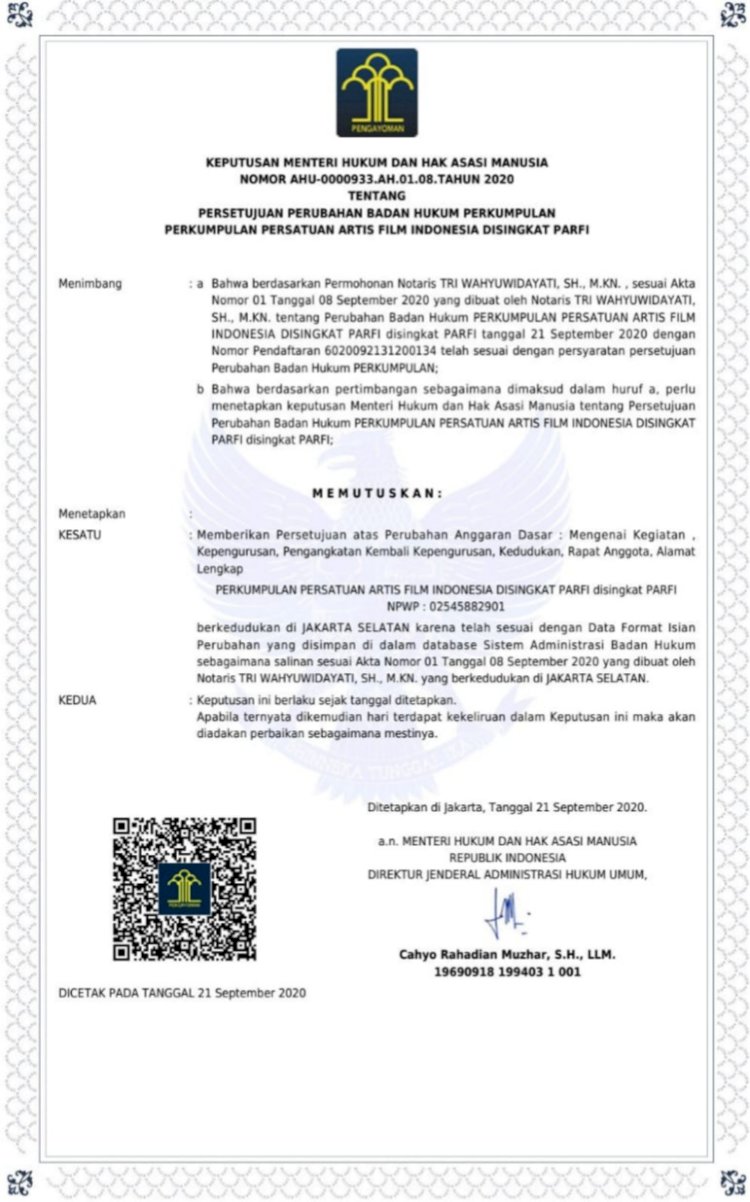 Jakarta |RedaksiDaerah| - Puji dan syukur kita bersama-sama panjatkan kepada Tuhan Yang Maha Kuasa atas segala rahmat dan hidayahnya, hingga kita terhidar dari berbagai musibah dan telah di terbitkannya Surat Keputusan (SK) resmi dari KEMENKUMHAM RI atas pengukuhan Alicia Djohar dan jajarannya sebagai Ketua Umum Parfi yang sah dan resmi untuk periode 2020-2025.