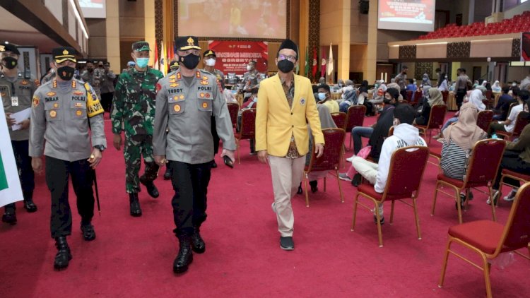 Presiden Joko Widodo mengatakan, dirinya bersama Kapolri Jenderal Pol Listyo Sigit Prabowo, Rektor UNP dan Ketua BEM menggerakkan vaksinasi massal.