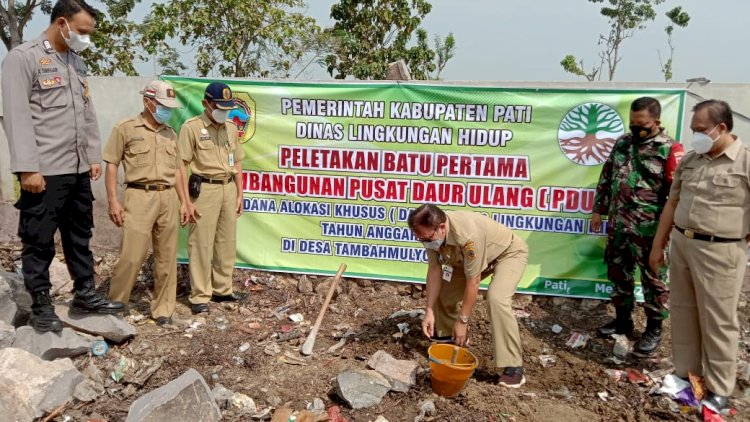 Pati | redaksidaerah.com Peletakan batu pertama pembangunan pusat daur ulang(PDU) yang bertempat di desa tambahmulyo kecamatan gabus kabupaten pati.dalam kegiatan tersebut di hadiri Ir.Purwadi (ka dinas DLHK pati) beserta jajarannya,camat gabus,kades tambahmulyo beserta jajarannya ,kelompok posyantekdes,BPD,tokoh masyarakat.