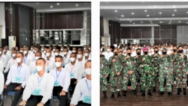 Sebanyak 69 Calon Tantama Prajurit Karier (PK) Tahun Anggaran 2021 Panda Belawan menjelang keberangkatan ke Malang Jawa Timur untuk mengikuti test pusat mendapatkan pembekalan dari Komandan Lantamal I di ruang Aula Yos Sudarso, Senin (01/11/21).