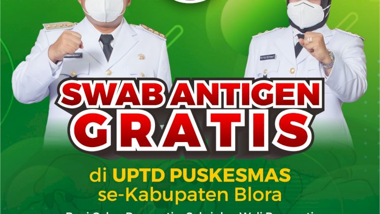 BLORA.|redaksidaerah.com Pemerintah Kabupaten Blora melalui Dinas Kesehatan akan memfasilitasi pemberian uji swab antigen secara gratis kepada para calon pengantin dan pelajar atau santri yang akan kembali ke sekolah maupun pondok pesantren.