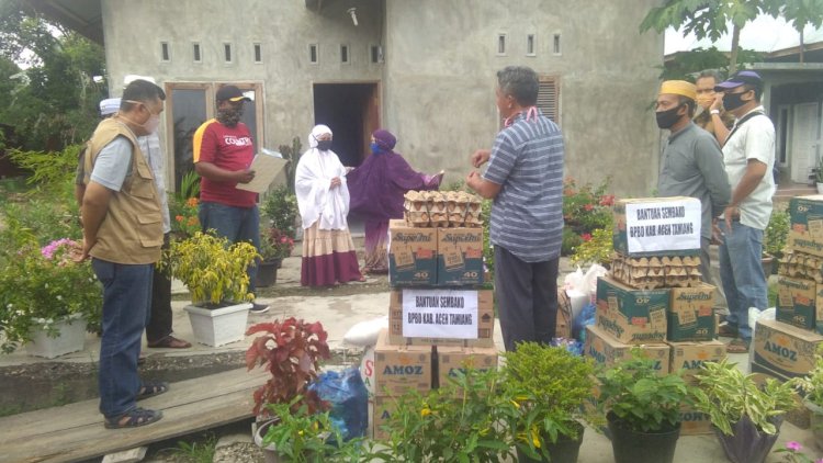 Aceh Tamiang |Aceh| - Bupati Aceh Tamiang H. Mursil, SH, M.Kn yang diwakili oleh Asisten Pemerintahan Zulfiqar, SP menyerahkan bantuan dari Gugus Tugas Aceh Tamiang Kepada 4 (empat) Kepala Keluarga (KK) yang sedang menjalani isolasi mandiri dirumahnya bertempat di Kampung Alur Cucur Kecamatan Rantau, Kabupaten Aceh Tamiang, Aceh, Jum'at (01/05/20).