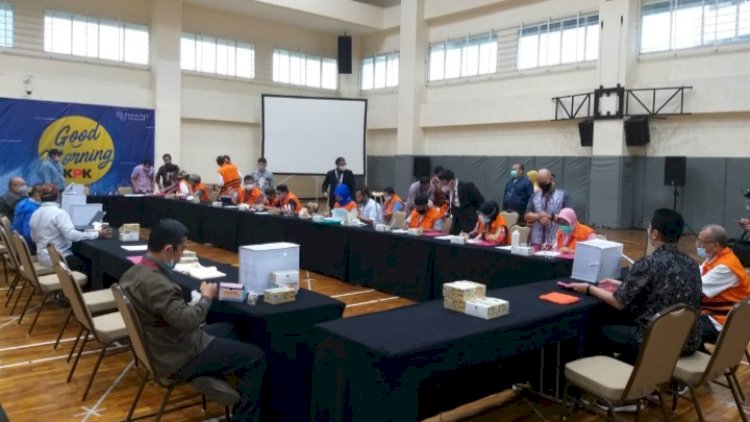 Menurut Jubir KPK, Ali Fikri dalam keteranganya, bahwa penyerahan 14 tersangka dan barang bukti (BB) itu setelah berkas perkara dinyatakan lengkap (P21).