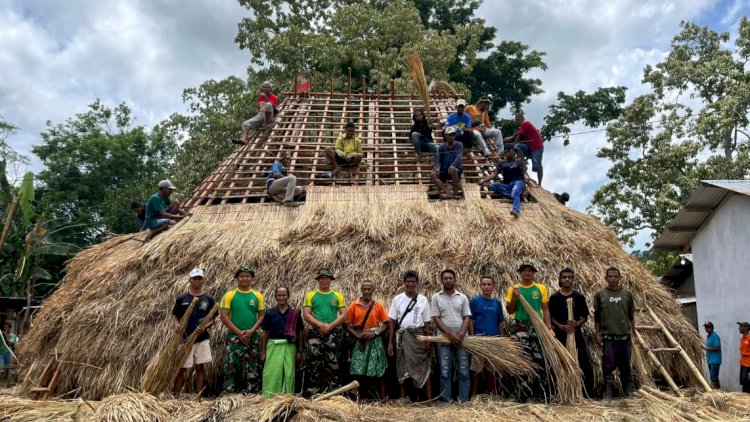 Dalam pelaksanaan kegiatan, personel Pos Lookeu bekerja bersama Ketua Suku, Marianus Ulu, serta lebih dari 45 masyarakat Desa Tulatudik. Para prajurit membantu pemasangan dan pengikatan atap alang-alang, memastikan penataan material dilakukan dengan kuat, rapi, dan tetap mengikuti kaidah adat. Kolaborasi antara Satgas dan masyarakat ini menjadi wujud gotong royong yang memperlihatkan sinergi kuat dalam menjaga warisan budaya leluhur.