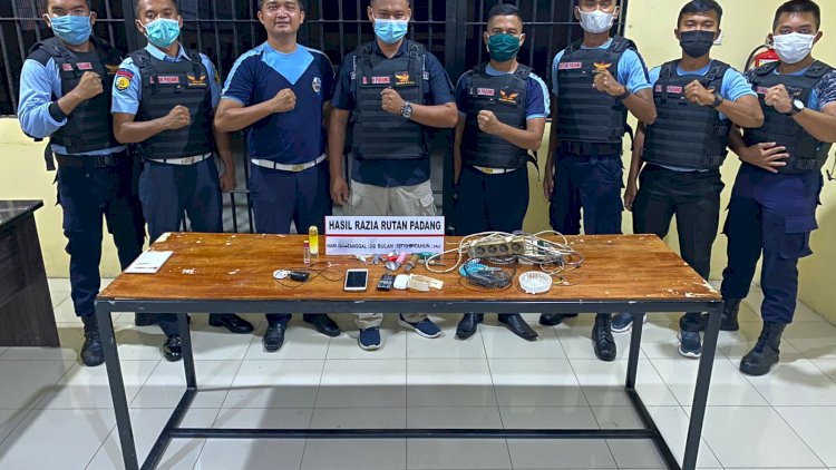 SUMBAR|PADANG.Petugas Rumah Tahanan (Rutan) kelas II B, Anak Air, Kota Padangg menyita 3 unit ponsel saat menggelar razia pada Selasa malam (28/9/2021).