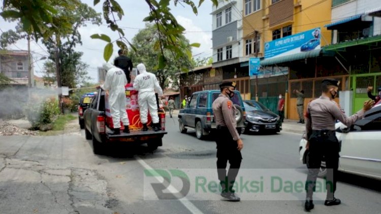 Medan, RedaksiDaerah.com - Kepolisian Daerah (Polda) Sumatera Utara rutin menyemprotkan cairan desinfektan dalam mencegah penyebaran klaster baru Covid-19 di Kota Medan, Sumatera Utara.
