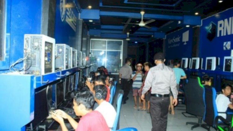 Remaja yang sedang bermain game online di kawasan Jalan Veteran ini langsung berhenti, setelah petugas memberikan himbauan agar segera pulang dan tidak meneruskan permainan onlinenya tersebut.