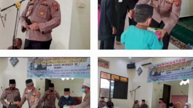 Belawan. Redaksi Daerah com .Polres Pelabuhan Belawan memperingati maulid nabi muhammad SAW 1443 H secara sederhana dan memberi santunan 50 anak yatim piatu Jumat (22/10/2021 ) pagi dimesjid mapolres Pelabuhan Belawan.