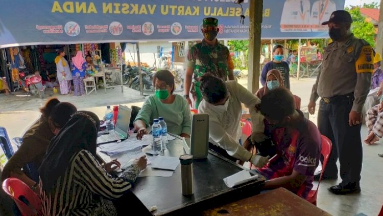 Polsek Pantai Labu Polresta Deli Serdang dalam rangka pengamanan percepatan, kebut vaksinasi Massal Covid-19 di tiga Desa Kabupaten Deli Serdang Selasa, 14 Desember 2021 sekira Pukul 09.00 wib s/d Selesai.