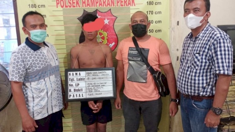 "Atas kejadian tersebut, korban membuat laporan polisi di Polsek Hamparan Perak, lalu dari hasil penyelidikan pada Kamis kemarin didapat informasi TSK sedang berada di kawasan Binjai Selatan dan langsung dilakukan pengejaran dan penangkapan oleh Unit Reskrim Polsek Hamparan Perak." Sambung Kasat Reskrim