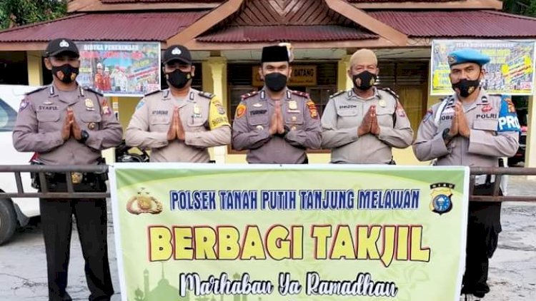 Rokan Hilir-Kapolsek Tanah putih tanjung melawan IPDA Irwandi.H Turnip SH, Beserta Anggota laksanakan kegiatan berbagi Takjil kepada warganya Tanah Putih Tanjung Melawan Dilaksakan Didepan Polsek Kecamatan Tanah Putih Tanjung Melawan Kabupaten Rokan Hilir Provinsi Riau, Selasa 5/4/2022