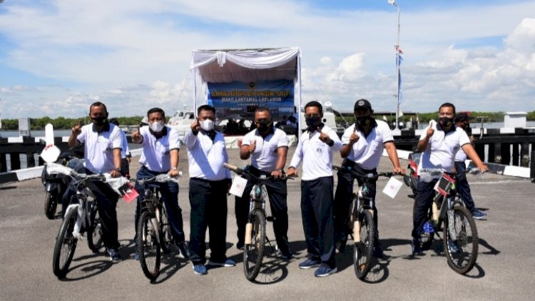 Prajurit Jalasena Matra laut dengan penuh semangat dan gembira laksanakan olahraga bersama. Ratusan Doorprize dibagikan kepada Prajurit TNI AL Lantamal I disela-sela olahraga bersama, Pelaksanaan olahraga bersama di Lapangan Apel Mako Lantamal I Belawan. Selasa (09/11/21).