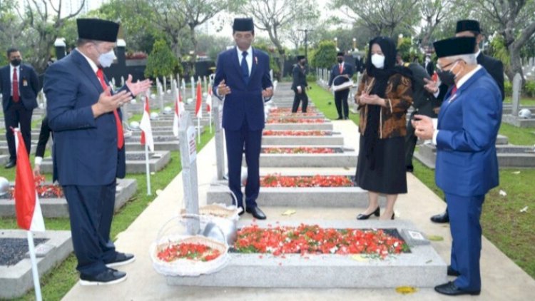 Jakarta, RedaksiDaerah.com - Presiden RI., Joko Widodo bertindak selaku inspektur upacara memimpin ziarah nasional dalam rangka peringatan Hari Pahlawan tahun 2021 di Taman Makam Pahlawan (TMP) Nasional Utama Kalibata, Jakarta, Rabu (10/11/21).