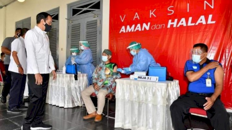 Dalam rangkaian kunjungan kerja di Daerah Istimewa Yogyakarta, pada Senin, 1 Maret 2021, Presiden Joko Widodo meninjau jalannya proses vaksinasi massal di Pasar Beringharjo dan Museum Benteng Vredeburg Yogyakarta, Kota Yogyakarta.