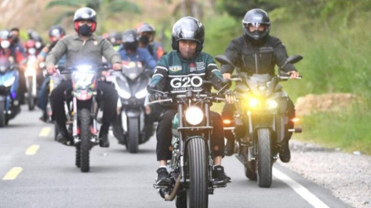 Toba, RedaksiDaerah.com - Presiden RI., Joko Widodo (Jokowi) mengendarai sepeda motor saat kunjungan kerja (kunker) ke Sumatera Utara. Dari Simpang Sibisa, Kabupaten Toba, Jokowi menunggangi Kawasaki W175 ubah suaian menuju Kawasan Pantai Bebas Parapat, Kabupaten Simalungun, Sumatera Utara, Rabu (02/02/22).