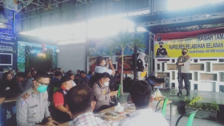 Sekitar 100 orang wartawan dilingkungan Polres Pelabuhan Belawan hadiri acara HPN ke 76 yang diselenggarakan Polres Pelabuhan Belawan Rabu (16/02/2022) pukul 13.30 wib di Cafe Selat Malaka jalan Sumatera Kelurahan Belawan Satu Kecamatan Medan Belawan Kota Medan (Sumut).