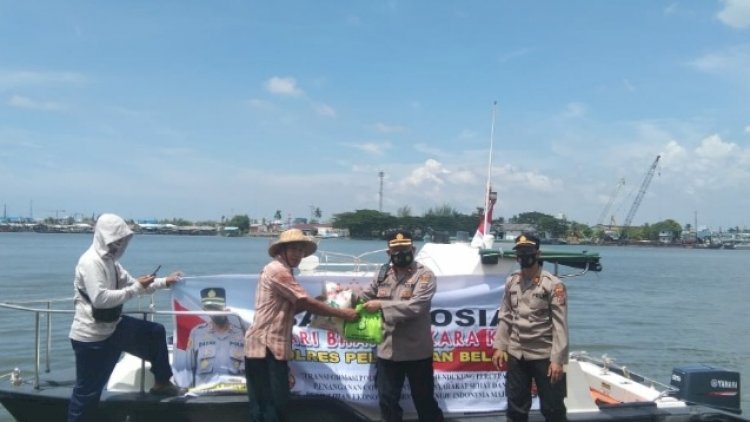 Polres Pelabuhan Belawan melakukan kunjungan dan memberikan bantuan 100 paket sembako kepada para Nelayan Pesisir Belawan, Senin, (28 /06/2021) pukul 11.00 Wib, di sekitar Pesisir Laut Belawan, Kelurahan Belawan I, Kecamatan Medan Belawan, Kota Medan (Sumut), 100 (seratus) paket sembako berupa minyak goreng, beras, dan gula pasir.