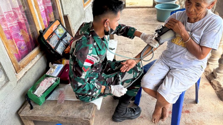 TTU, RedaksiDaerah.com - Satgas Pamtas RI-RDTL Sektor Barat Yonarhanud 2 Kostrad Pos Inbate mengadakan kegiatan pelayanan kesehatan secara gratis di Desa Inbate, Kecamatan Bikomi Nilulat, Kabupaten TTU, Senin (12/10/2025).