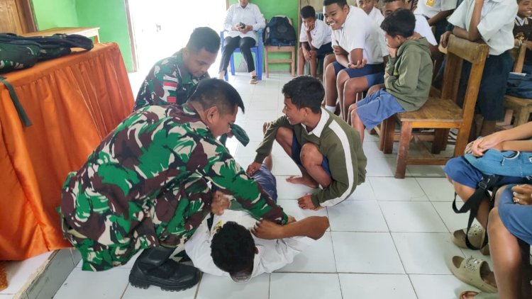 Belu, RedaksiDaerah.com - Satgas Pamtas RI–RDTL Sektor Timur Yonarmed 12 Kostrad melalui Pos Kewar melaksanakan kegiatan gadik materi kesehatan bertempat di SMPN 1 Atap Kewar, Desa Kewar, Kecamatan Lamaknen, Kabupaten Belu. Kegiatan ini bertujuan untuk meningkatkan pengetahuan dan kesiapsiagaan para siswa dalam menghadapi situasi darurat, khususnya terkait pertolongan pertama pada kecelakaan, Rabu (14/01/2026).