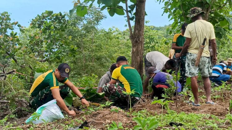 Belu, RedaksiDaerah.com – Satgas Pamtas RI–RDTL Sektor Timur Yonarmed 12 Kostrad Pos Salore melaksanakan kegiatan penanaman 1.000 pohon porang bersama warga Desa Tulakadi, Kecamatan Tasifeto Timur, Kabupaten Belu. Kegiatan ini merupakan upaya bersama untuk mendorong ketahanan pangan dan pengembangan potensi pertanian lokal di wilayah perbatasan.