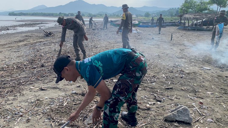Personel gabungan secara bergotong royong membersihkan sampah plastik dan berbagai limbah yang tersebar di sepanjang garis pantai. Kegiatan ini juga menjadi sarana edukasi kepada masyarakat sekitar agar semakin peduli terhadap kebersihan lingkungan, khususnya wilayah wisata yang menjadi kebanggaan daerah.