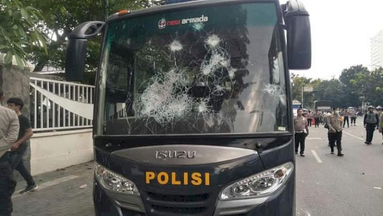 Pantauan di lapangan, sejumlah kendaraan yang dirusak pendemo yakni satu unit bus, mobil jenis sedan, dan minibus. Para pendemo terlihat melempari kendaraan yang tengah terparkir di pinggir jalan dengan batu.