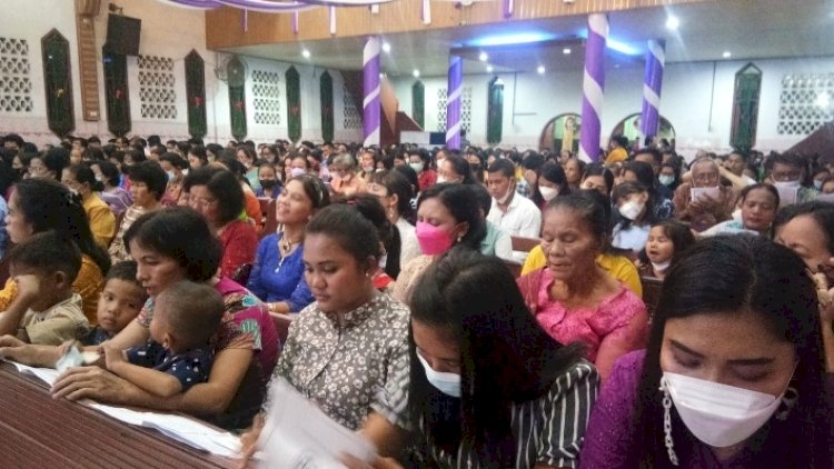 Saling berbagi ucapan Selamat Natal yang yang dilakukan para jemaat dengan jemaat dan jemaat dengan Penetua Gereja secara bergantian sebagai tanda kebahagian atas lahirnya Juru Selamat Manusia di Gereja HKBP Belawan Dua Lorong Persaudaraan pada Sabtu, (25/12/2021).
