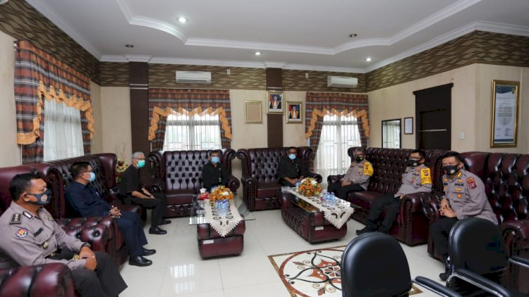 Dalam kesempatan ini Kapolda Sumut menyampaikan maksud kedatangannya bersama PJU yaitu bertujuan untuk meminta kerja sama dalam pencegahan serta pendisiplinan anjuran protokol kesehatan untuk mencegah penyebaran Covid-19 yang di laksanakan secara serentak.