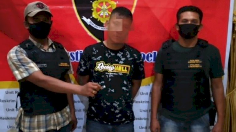 Pelaku tindak pidana narkotika jenis sabu, KD alias Adi tak berkutik saat diamankan Team Opsnal Polsek Kampung Rakyat.