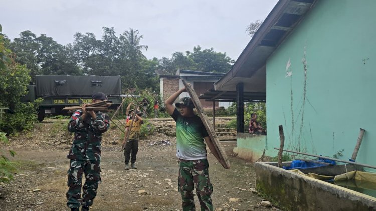 Belu, RedaksiDaerah.com – Satgas Pamtas RI–RDTL Sektor Timur Yonarmed 12 Kostrad kembali menunjukkan kepedulian terhadap masyarakat perbatasan dengan melaksanakan pembangunan ulang Rumah Tidak Layak Huni (RTLH) ke-5 milik warga di wilayah tapal batas, Kabupaten Belu, Nusa Tenggara Timur. Kegiatan ini dilaksanakan bekerja sama dengan Komunitas Sant’Egidio, serta disertai pemberian bantuan sembako kepada warga penerima manfaat. Rabu (18/02/2026)