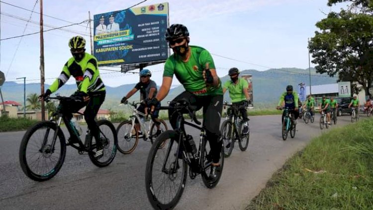 Solok |Sumbar| - Kegiatan gowes bersepeda bersama, sebagai wujud kebersamaan dan sinergitas TNI dan Polri, khususnya Kodim 0309/Solok dengan Polres Solok Kota yang dimulai start awal dari halaman Makodim 0309/Solok dengan route sepanjang ± 12 KM dan kembali lagi finish di Makodim, Jumat (11/09/20).