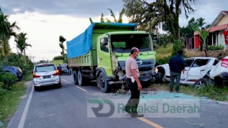 Karo, RedaksiDaerah.com - Warga sempat di kejutkan karena adanya suara benturan keras. Setelah di lihat telah terjadi Laka Lantas tabrak depan - samping, 1 (satu) unit mobil Double Cabin Merk Mitsubishi Triton No Pol BK 9239 DQ kontra 1 (satu) unit Mobil Dump Truck Tronton Merk Hino No pol BK 9924 EL di Jalan Umum Medan - Kota Cane KM 100-101 Desa Bertah, Kecamatan Munte, Kabupaten Karo, Sumatera Utara, Jum'at (26/02/21) sekira pukul 16.00 WIB.