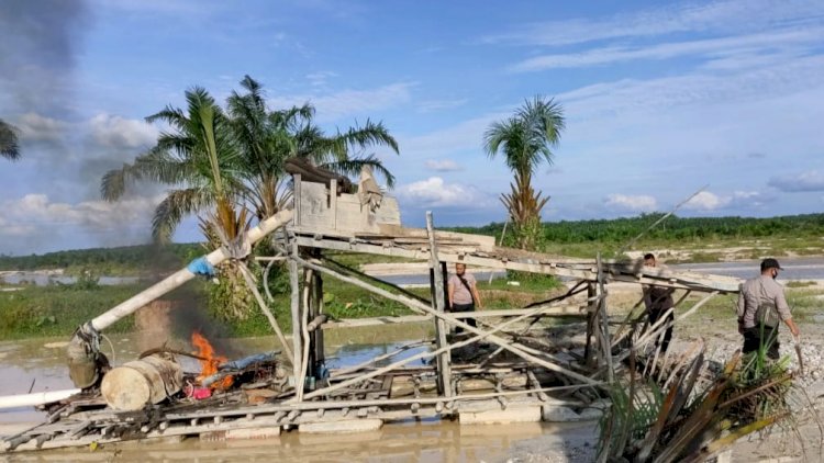 Sebanyak 9 unit alat Dompeng beserta Rakitnya dihancurkan dan dibakar di TKP. Saat petugas tiba dilokasi, para pelaku melarikan diri.