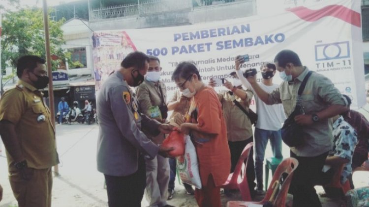 Tim 11Jurnalis Medan Utara telah menyalurkan 500 Paket Sembako kepada Warga yang terdampak perekonomian korban covid 19 Selasa (08/06/2021) pukul 14.00 Wib di Jalan Titi Pahlawan Kelurahan Martubung, Kecamatan Medan Labuhan, Kota Medan (Sumut) .