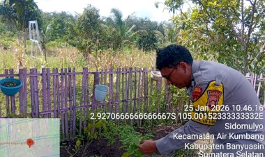 BANYUASIN - Upaya Menjaga Ketahanan pangan nasional terus diperkuat hingga ke tingkat desa. Bhabinkamtibmas Polsek Tungkal Ilir turun langsung ke tengah masyarakat untuk mengajak warga berperan aktif dalam Program Pekarangan Pangan Bergizi (P2B).