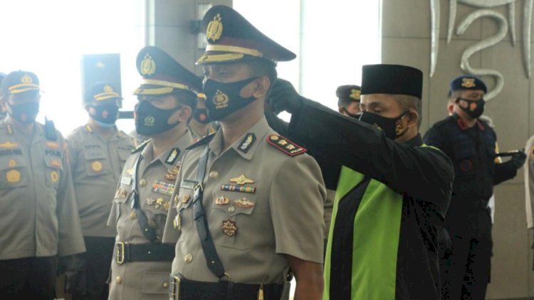 Upacara sertijab dipimpin Kapolda Sumbar Irjen Pol Drs. Toni Harmanto MH, Selasa (3/11/20) di ruang Jenderal Soekanto Mapolda Sumbar.
