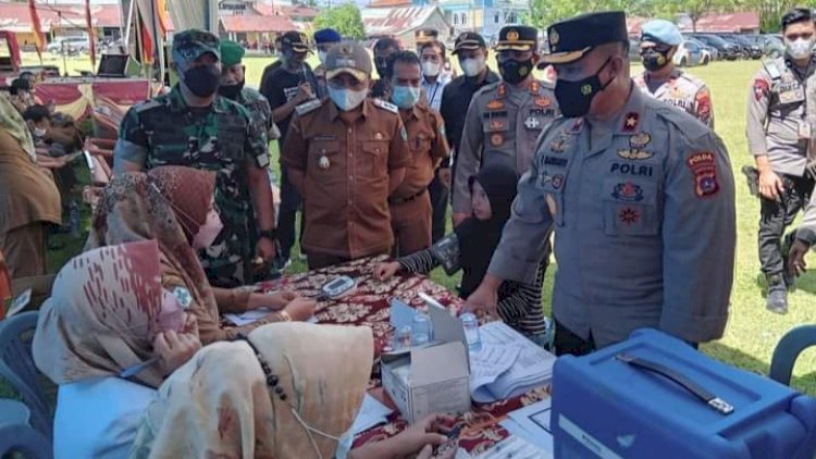Terlihat, Wakapolda Sumbar., Brigjen Pol Edi Mardianto melakukan dialog langsung dengan tim vaksinator yang dihadiri juga Forkopimca Sutera.