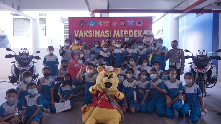 "Tak kalah pentingnya kegirangan anak-anak yang ikut vaksin digerai itu ditambah dengan hadirnya para badut ada yang berlogo Polantas," kata Kabid Humas.