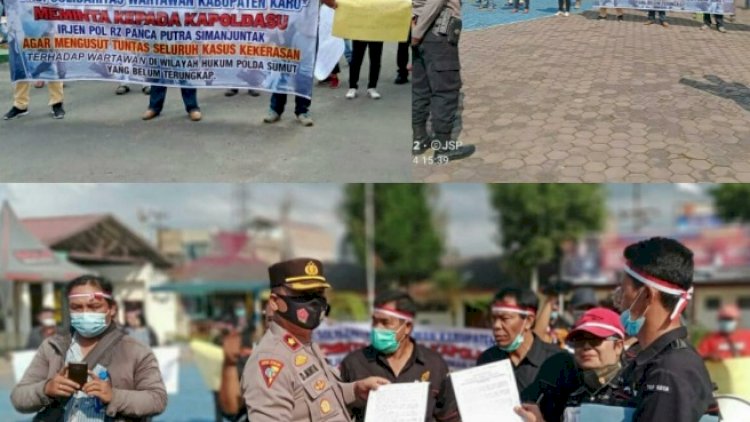 Kedatangan "Solidaritas Wartawan Kabupaten Karo ini untuk menggelar aksi damai dan orasi, serta meminta Kapoldasu, Irjen Pol RZ Panca Putra Simajuntak agar mengusut tuntas seluruh kasus kekerasan terhadap wartawan, diwilayah hukum Polda Sumatera Utara.