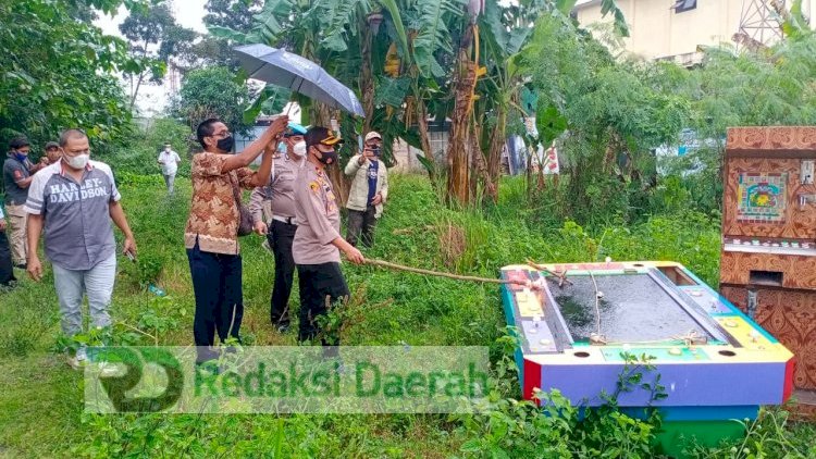Deli Serdang, RedaksiDaerah.com - Usai melakukan konpers tentang keberhasilan pengungkapan kasus penganiayaan dan pencurian dengan pemberatan di dalam rumah, Kapolsek Sunggal Kompol Yasir Ahmadi, SH, SIK, MH didampingi Kanit Reskrim AKP Budiman Simanjuntak, SE, MH dan Panit Reskrim IPTU M. Sofi, SH selanjutnya melakukan pemusnahan barang temuan hasil tangkapan Tekab Polsek Sunggal berupa 10 (sepuluh) unit mesin permainan judi dengan cara menyiram minyak kemudian dibakar hingga habis seluruhnya.